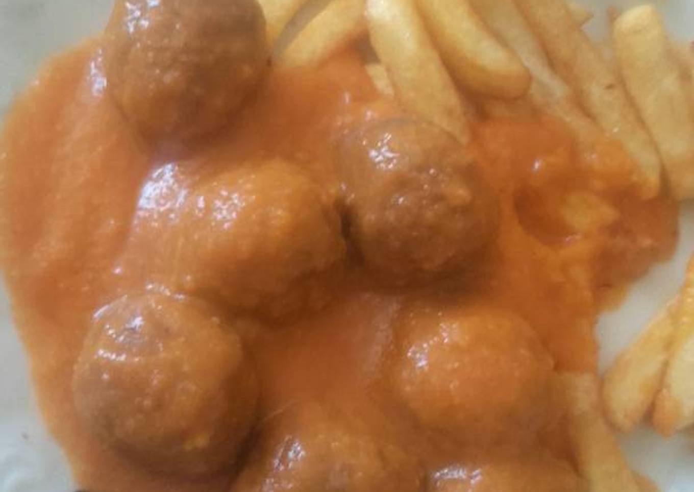 Las albóndigas o bien las haces tú o se compran echas yo en este caso las compré echas pues no tenía tiempo en acerlas pero aún así están buenísimas el truco está en la salsa