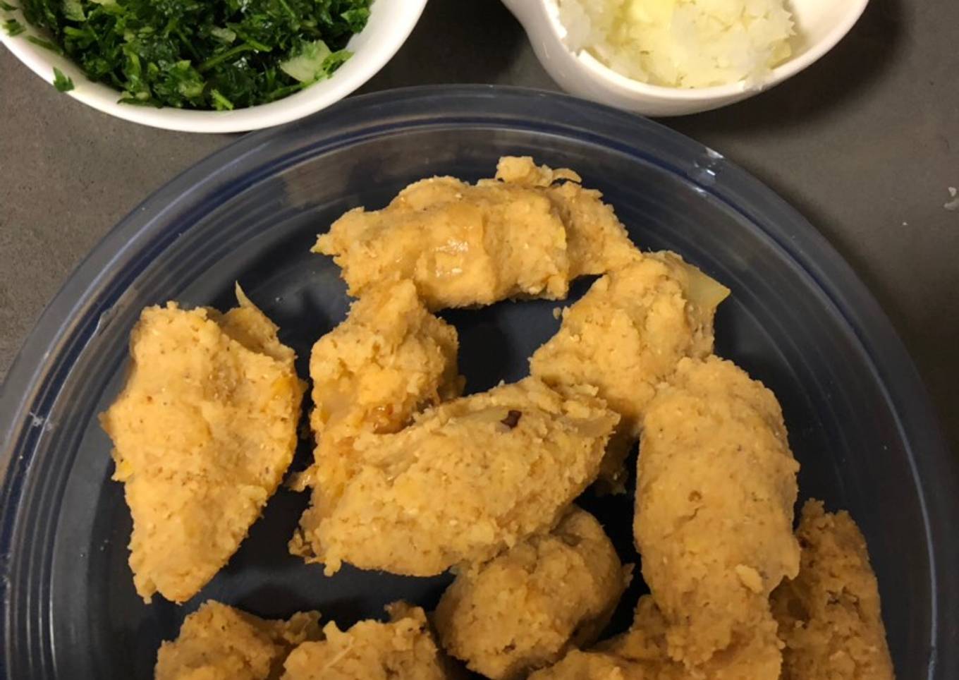 - Cuando esté tibio, que se pueda tocar, se hacen los koftes, se le da la forma que se quiera.