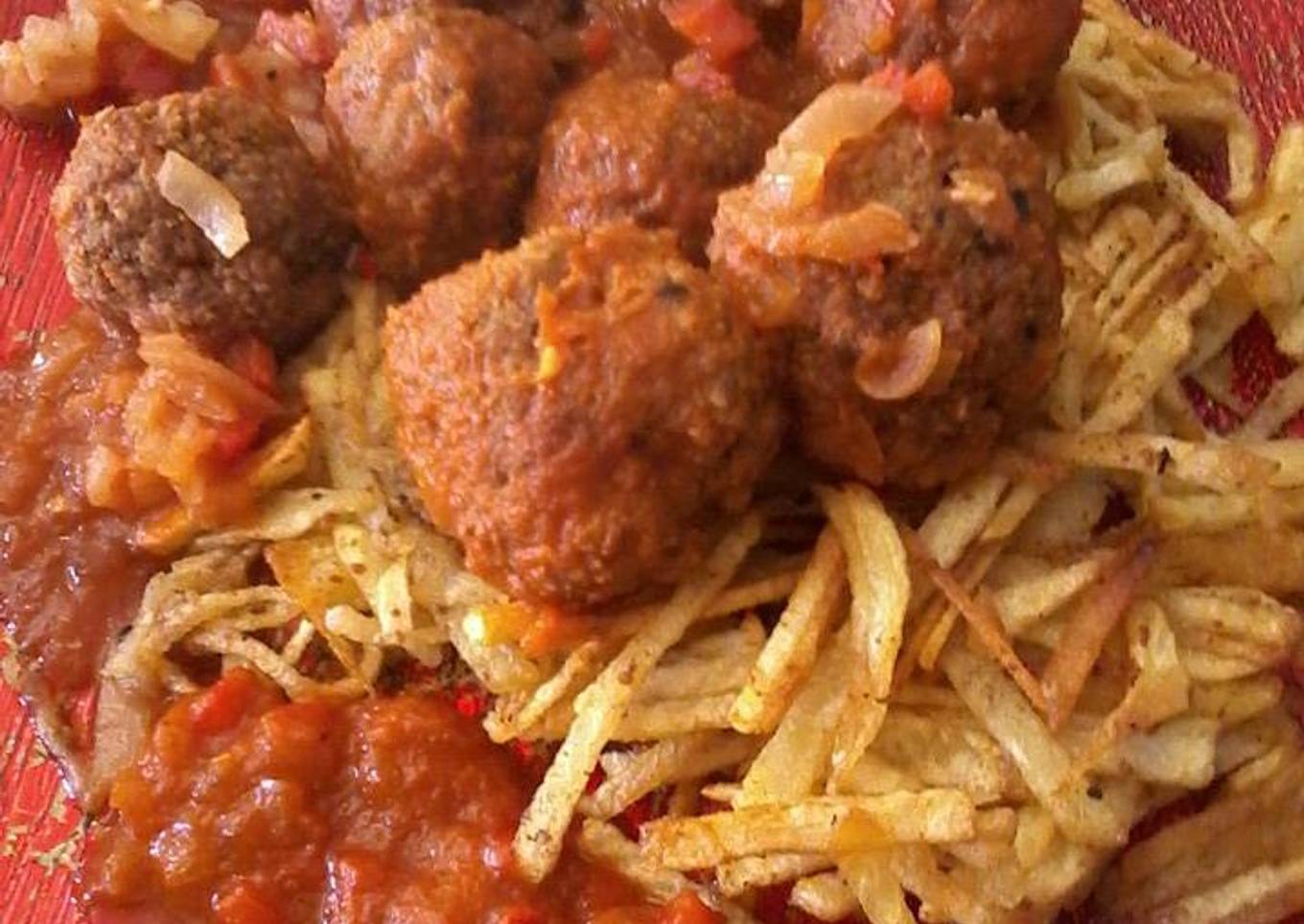 - Se frien las bolitas de carne. Luego se las culmina de cocinar en salsa, hecha con el puré de tomate, el morrón, la cebolla y un diente de ajo picado.