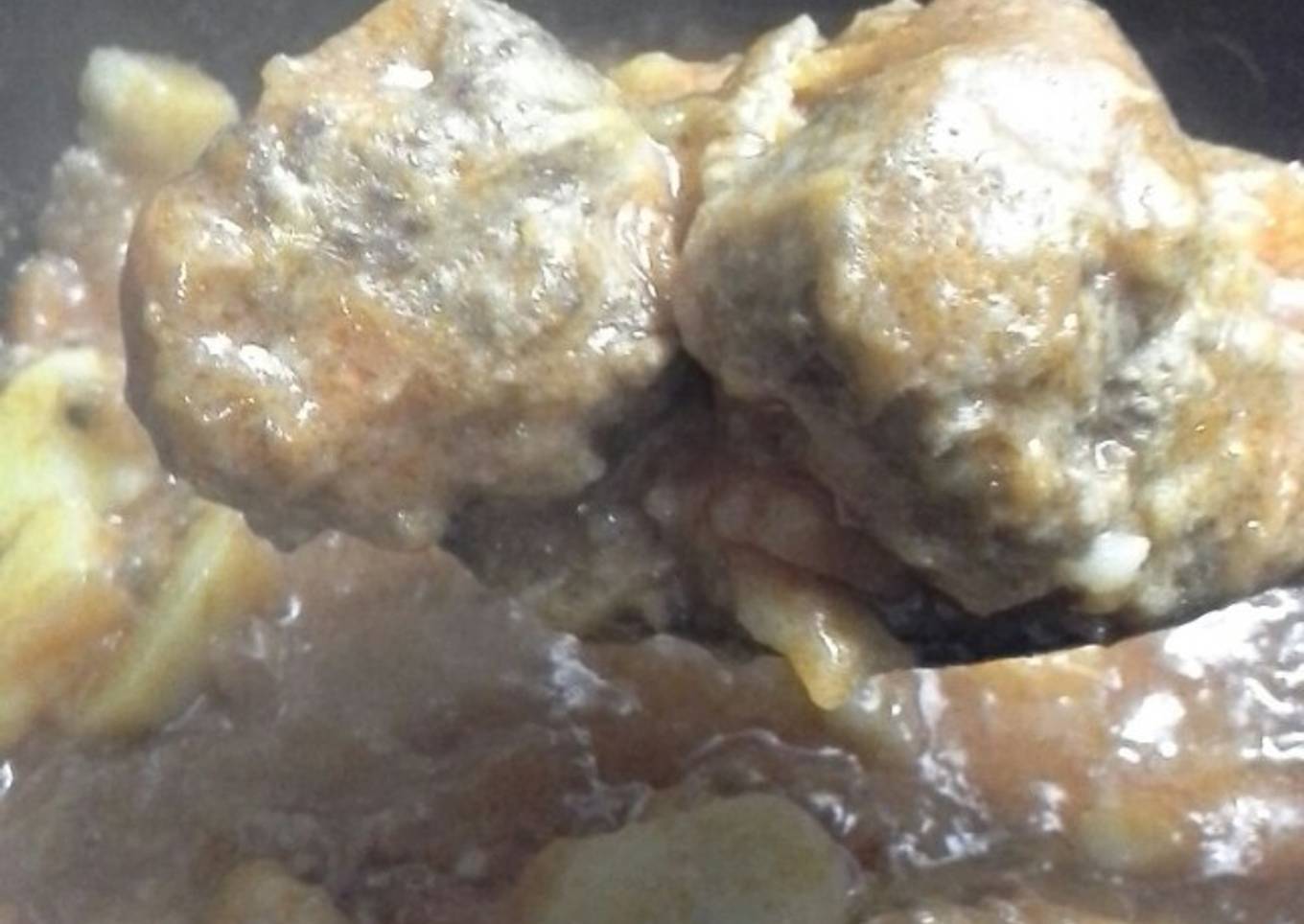 - Picar la cebolla, el morrón, el puerro y el verdeo y fritar en aceite, cuando dore colocar las albóndigas e ir moviéndolas hasta que doren, en ese momento poner la salsa de tomate, más o menos una taza y media, y remover. Agregar 1 zanahoria rallada y los condimentos. Incluye la sal.
