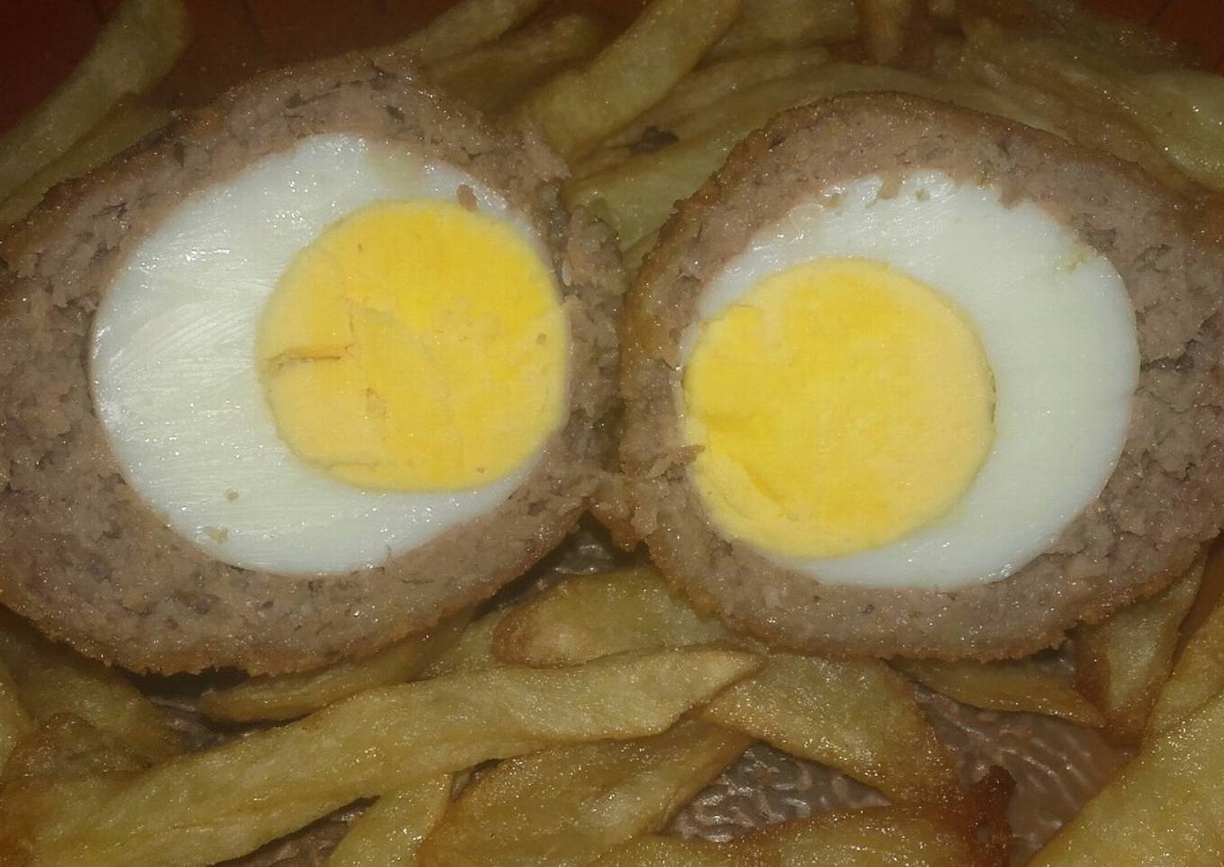 - Pelas los 6 huevos duros y recubrir cada uno con carne picada, hasta lograr que quede completamente tapado.