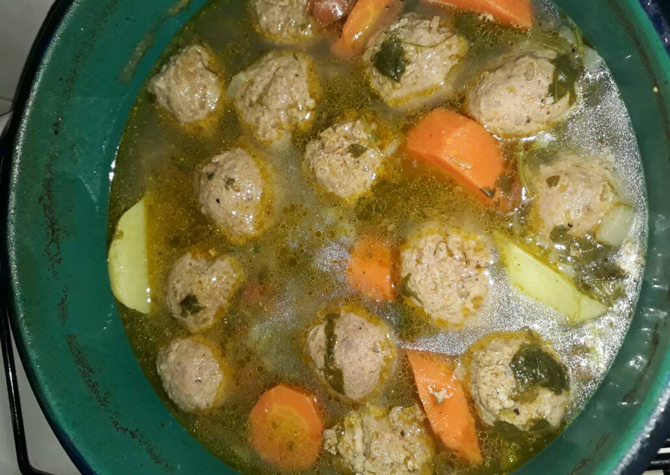- En un plato pones la carne molida y le agregas un huevo para que cuando pongas a hervir las bolitas no se deshagan, después empiezas a hacer toda la carne en bolitas, cuando termines de hacerlas! en una olla pones suficiente agua a hervir para que dejes caer las bolitas por que si la pones antes también hay riesgo que se deshagan, después le agregas el consomate y un ajo para sazonar, hasta el segundo hervor de las bolitas le agregas toda la verdura picada